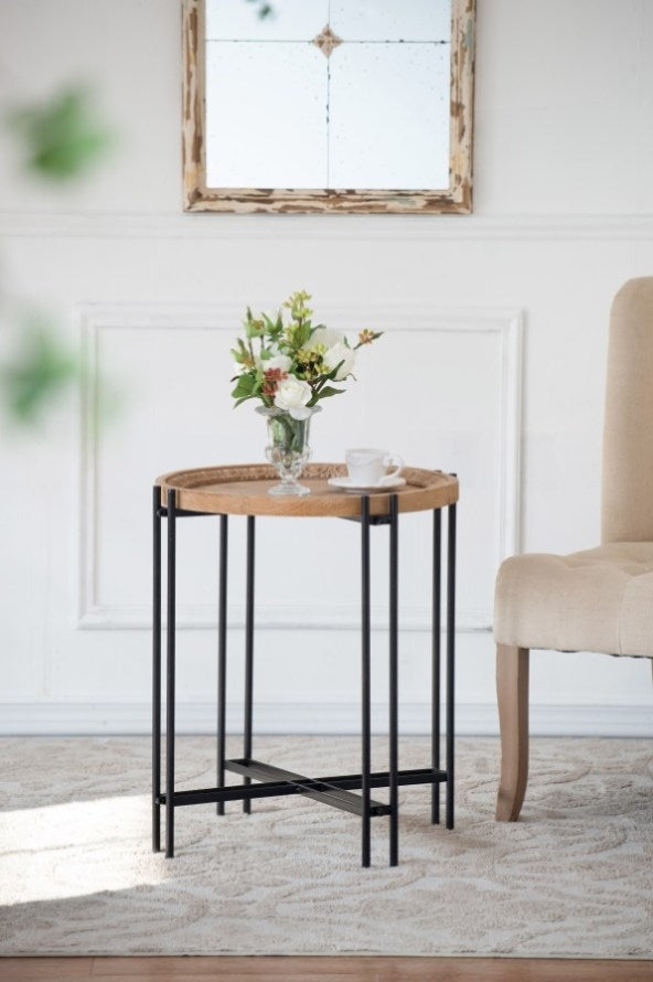 21.5" x 24" Round Side Table With Wood Top, End Table for Living Room Bedroom W2078P144748