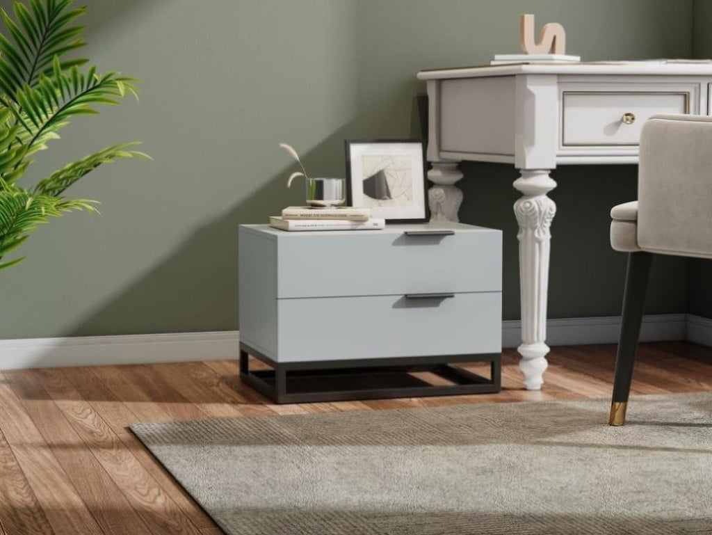 22" Grey white Nightstand with 2 Drawer , Small Dressers for Closet, Wood Storage Cabinet for W2948P245251