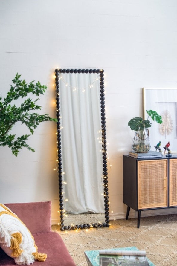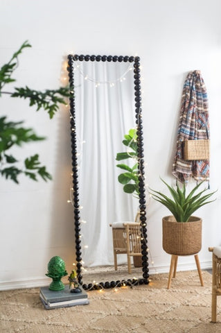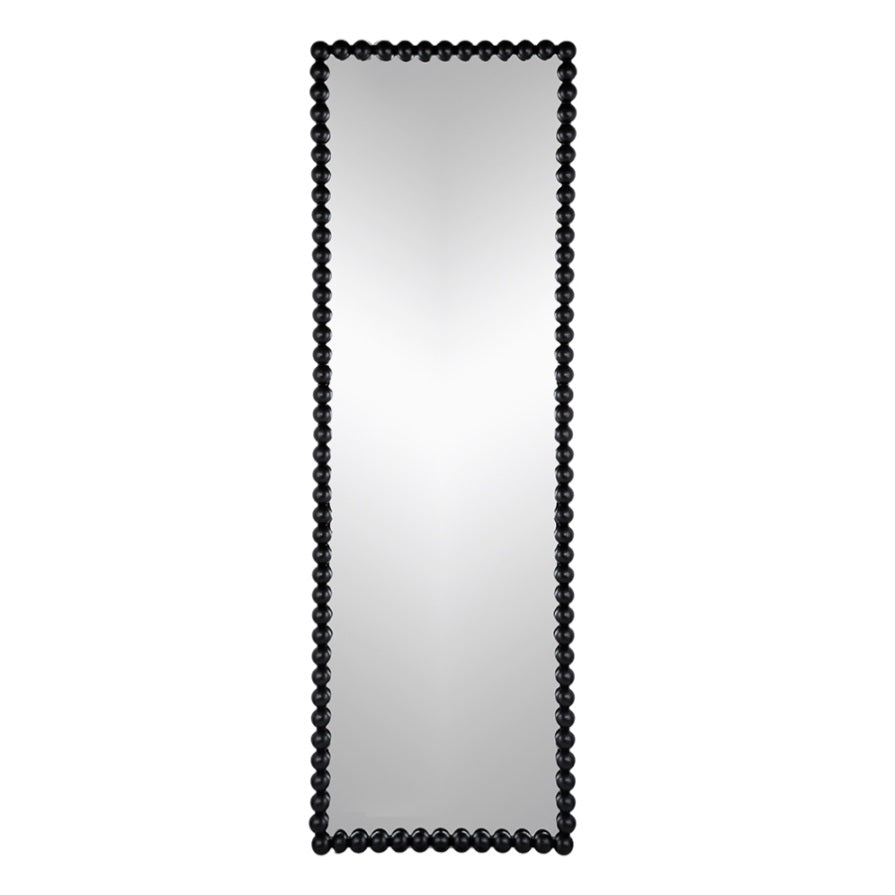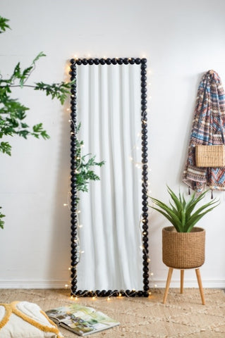 Standing tall at 72, this grand accent mirror is able to catch your whole reflection, making it as easy as possible to check your outfit. Perfect for your bedroom, living room or entryway, the mirror reflects natural and artificial light to brighten your home and make the room appear more spacious. More than just practical, the sturdy black iron frame consists of a series of spherical beads