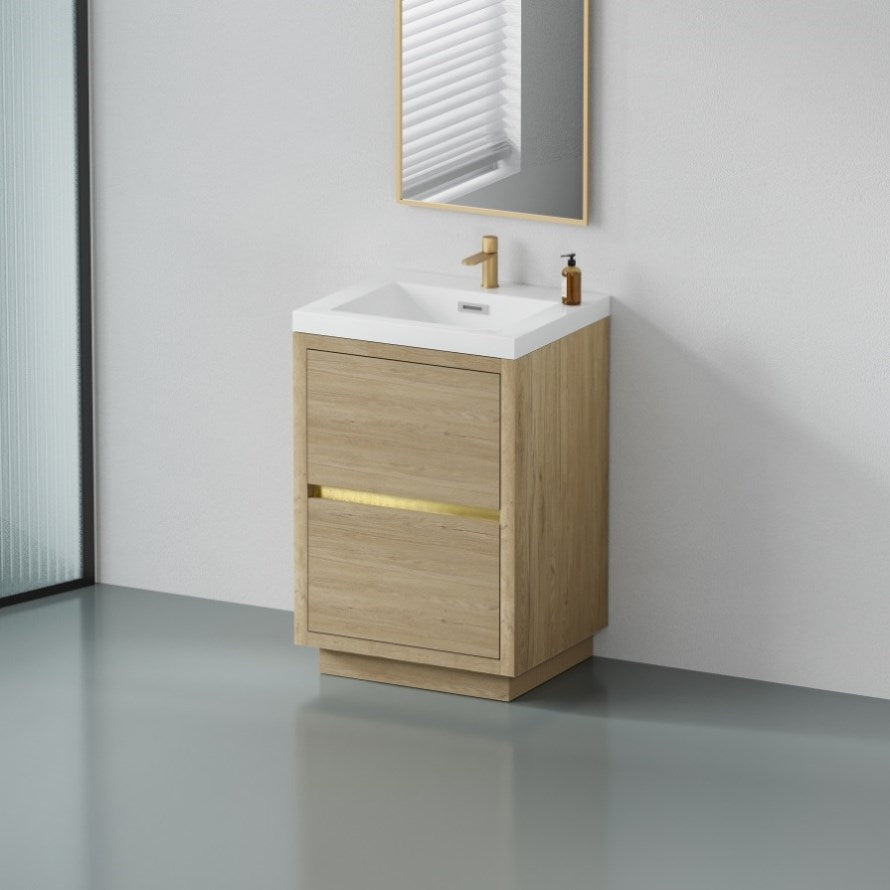 24" Freestanding Bathroom Vanity with Sink, Bathroom Storage Vanity Cabinet with Stone Resin W1573P211190
