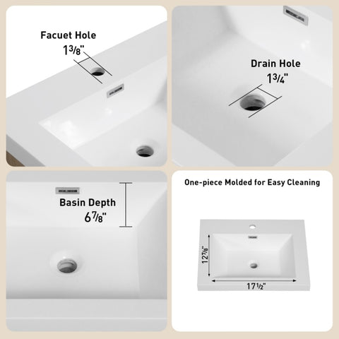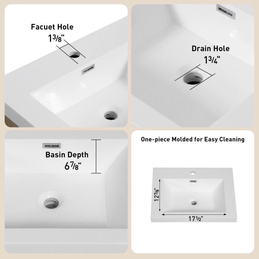 Premium Stone Resin Countertop: It features a glossy white, one-piece sink made of high-quality materials that are easy to clean, resist yellowing, and have low water absorption.