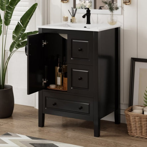 24 inch Bathroom Vanity with Sink, One Cabinet with Soft-closing Door, 3 Soft-closing Drawers, Retro N759P292551B