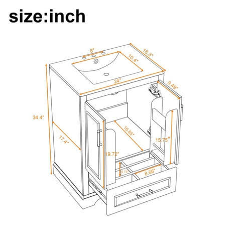24"Bathroom Vanity with Sink, MDF Cabinet with Solid Wood Frame, 1 Divided Drawer and 2 Soft Close N729P321378B