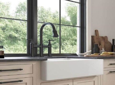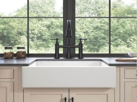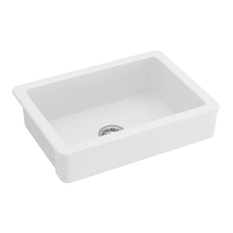 This beautifully designed farmhouse sink instantly elevates any kitchen. Its smooth, high gloss apron front serves as an elegant center piece for the entire kitchen. Durable ceramic construction with high temperature heat-treated vitreous glazed surface to resist stains and scratches.Ceramic is hardened with a lasting, high gloss glaze that prevents scratches and stains.Unique drop-in design makes this sink suitable for use on any standard countertop material.cUPC certified