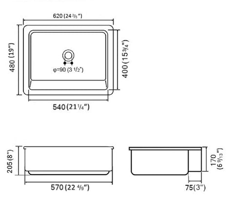 24"L x 19" W Farmhouse/Apron Front White Ceramic Kitchen Sink 69263515