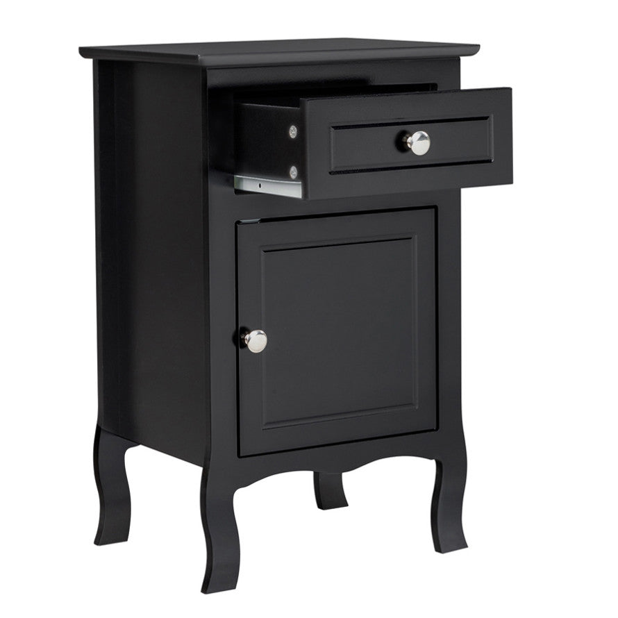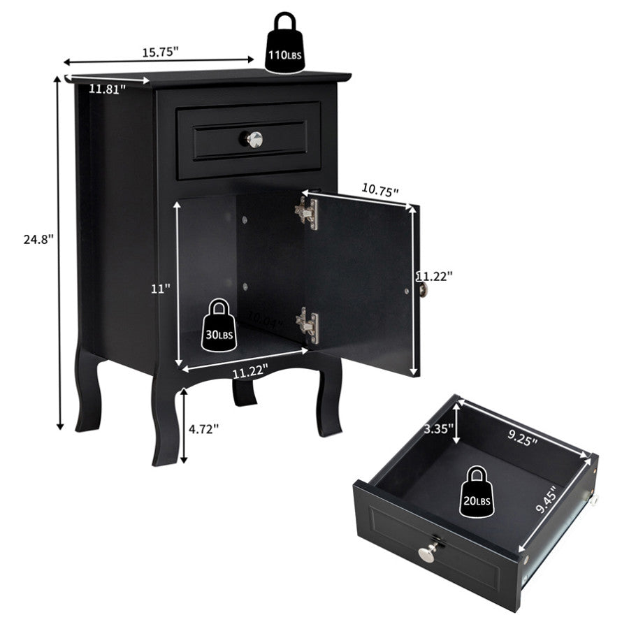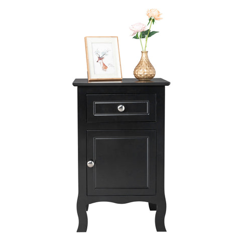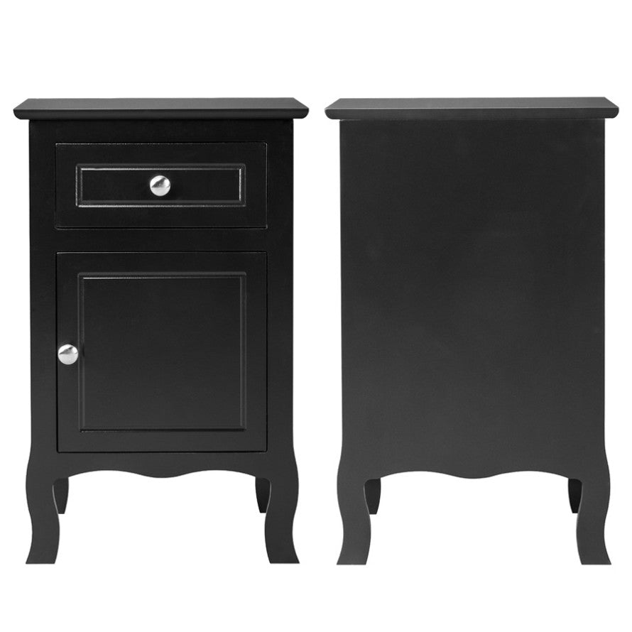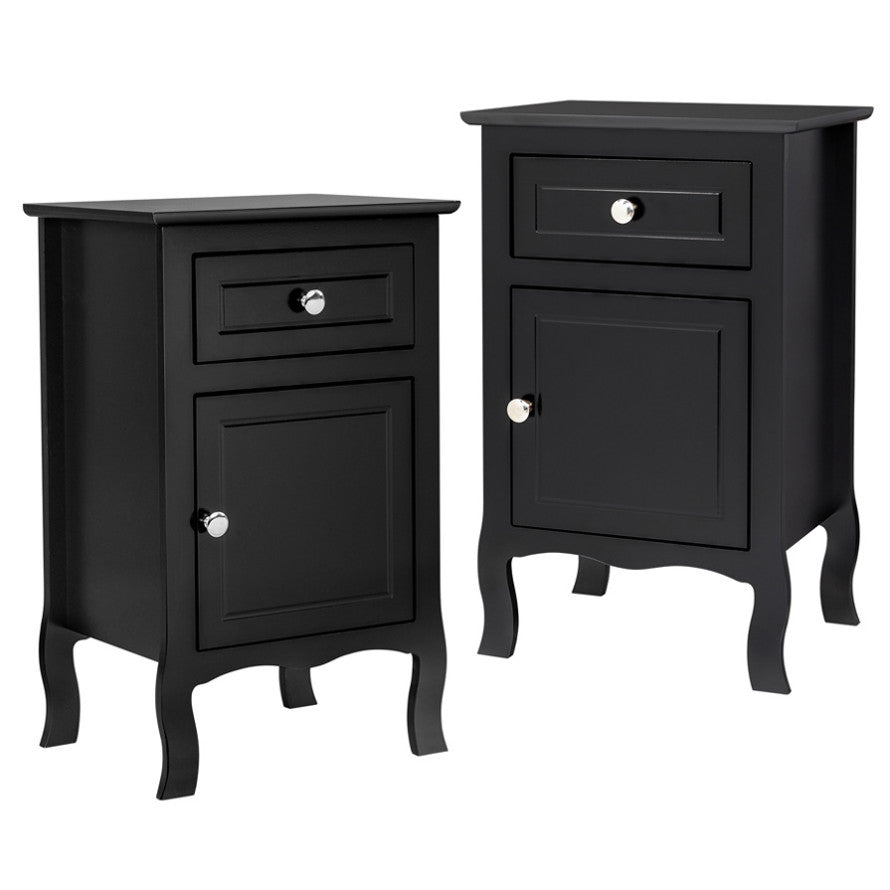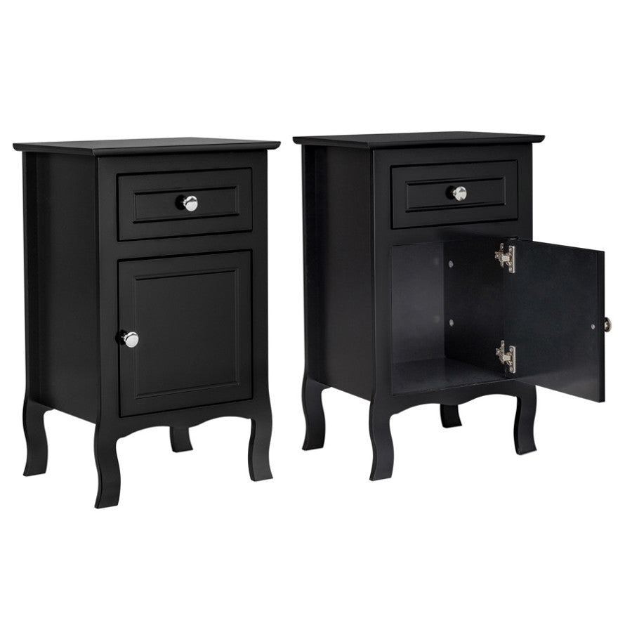 2pcs 40*30*63cm Country Style MDF Spray Paint Curved Feet One Draw One Door Night Table Black 71595633