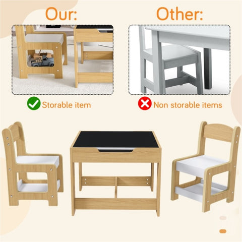 • Smart Storage Kids Activity Set – Designed for effortless organization! The chair features a built-in shelf for toys/books, while the table's spacious compartment holds blocks and art supplies. With easy-flip access for quick cleaning and compact chair storage under the table, this set keeps play areas tidy while maximizing fun.