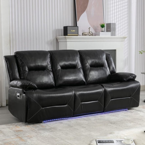 3 Seater Home Theater Recliner Manual Recliner Chair with a LED Light Strip Two Built-in Cup Holders WF323623AAB