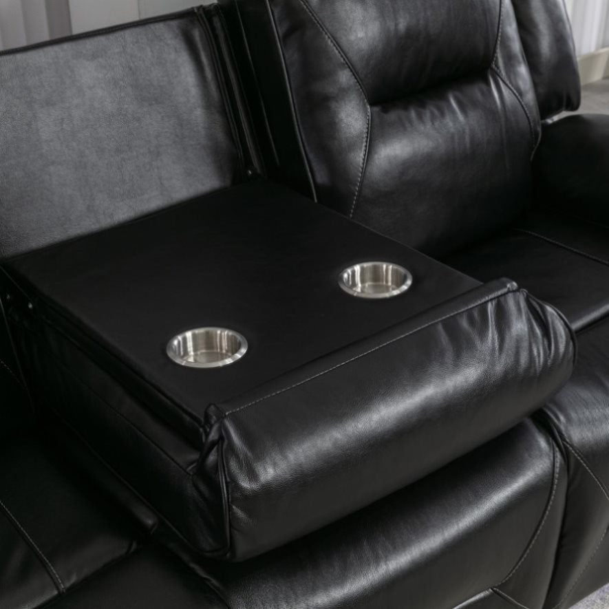 A Drop-down Table with Two Cup Holders - The middle seat of this recliner can be a drop- down table for you to put your stuffs when you put the backrest down. And you can keep your favorite beverages within arm's reach with the two built-in cup holders. No need to worry about spilling your drink during intense movie scenes or gaming moments. Sit back, relax, and enjoy your favorite drink without any interruptions.