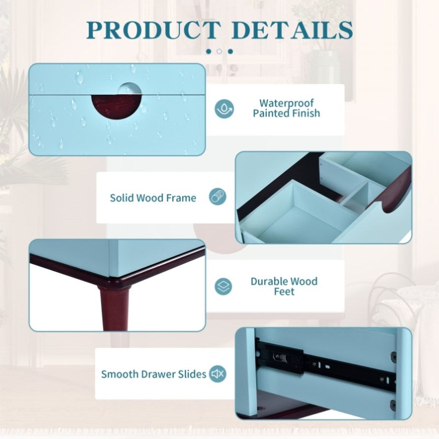 [Elegant Appearance]Carved craftsmanship and pure blue cabinets present you with a feast of beautiful perspectives. Washing up in front of such a bathroom cabinet can wash away your fatigue from the day.