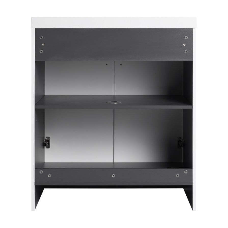Our design is derived from life, close to reality, has a bright modern style, and is ergonomic. The bathroom cabinet and basin integral design make the product more concise and easy. The bathroom cabinet has its own adjustable shelves inside, providing a lot of extra space for the bathroom.