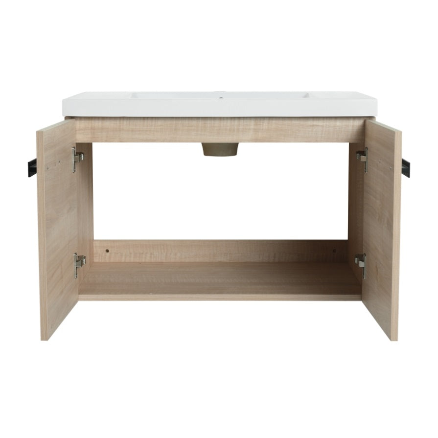Package includes: - 1x Vanity Cabinet;- 1x Resin Sink;- 2x Metal Handle; Parts Package