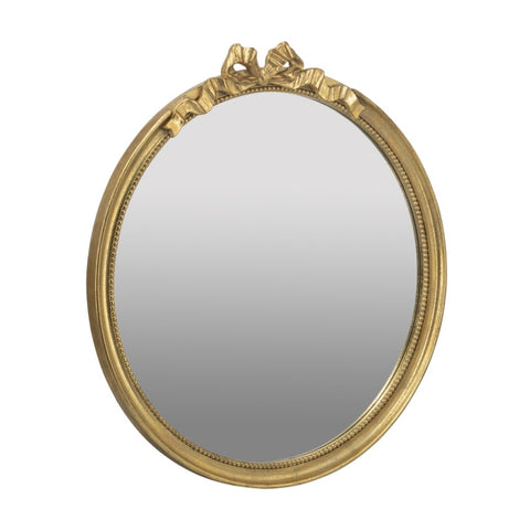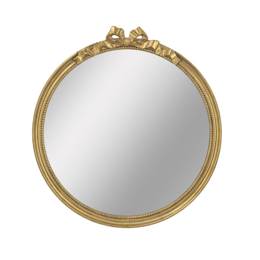 Drawing inspiration from the irresistible beauty of Baroque artworks, this accent mirror features a round wooden frame, a rich gold finish, and an alluring scrollwork crown.