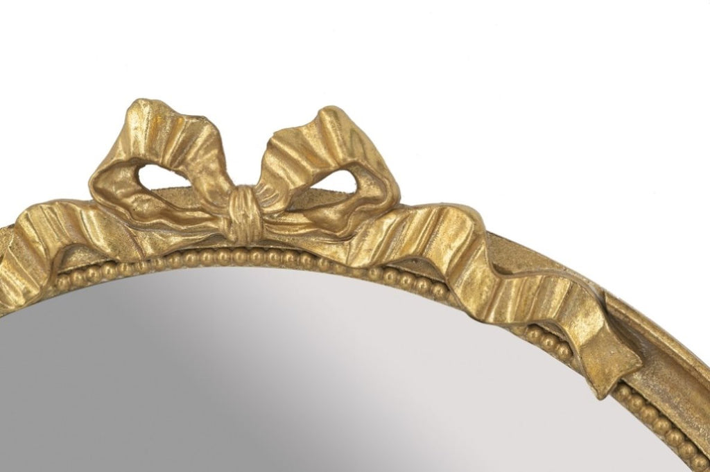 Drawing inspiration from the irresistible beauty of Baroque artworks, this accent mirror features a round wooden frame, a rich gold finish, and an alluring scrollwork crown. Whether mounted in your living room, entryway, or bedroom, it will seamlessly blend into any interior style, serving as a long-lasting statement piece.