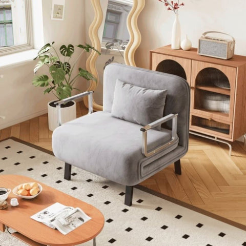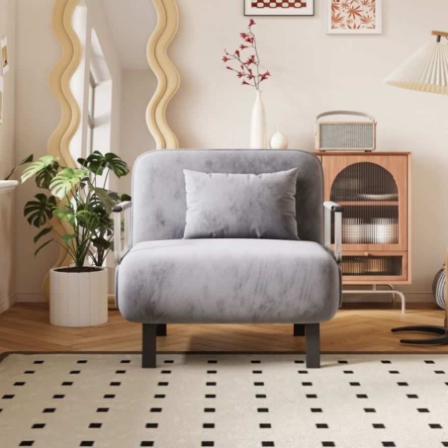 31.5 Convertible Chair Bed, Tri-Fold Sofa Bed with Adjustable Backrest & Pillow, Leisure Chaise W1767P220576