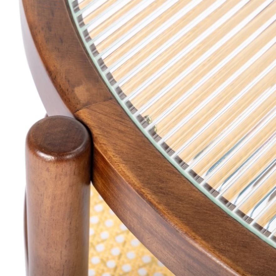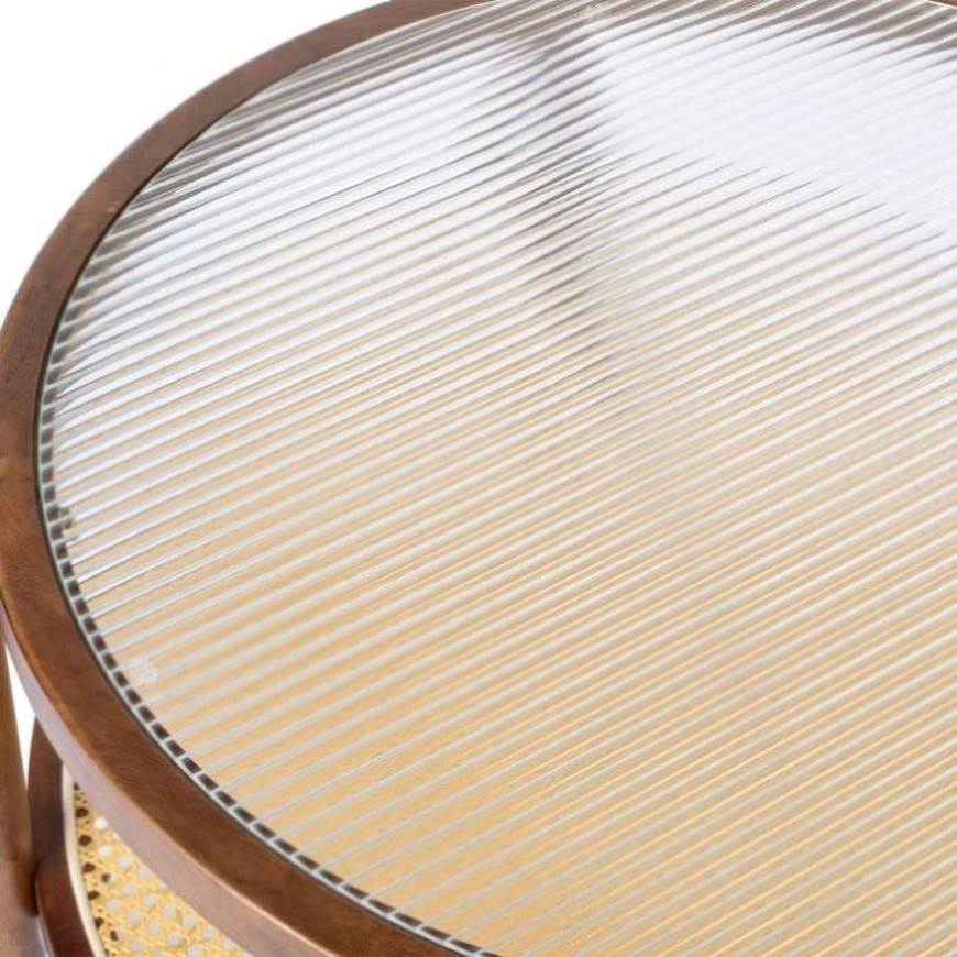 Elevate your interior or exterior decor with the natural elegance of this 31.5in Rattan Coffee Table. Featuring a spacious round tempered glass top with a unique water ripple design, this table blends artistic charm with everyday function. The hand-woven rattan shelf underneath adds texture and warmth, giving your space a relaxed boho vibe. Perfectly suited for both indoor and outdoor use, this end table works beautifully beside a sofa, bed, or lounge chair, bringing stylish convenience to your living room, bedroom, balcony, patio, or office.