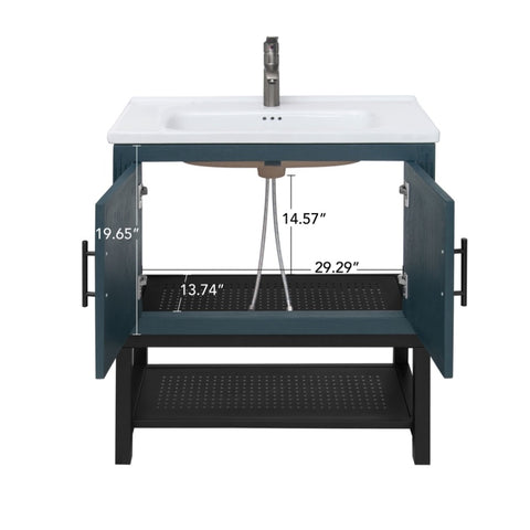 32" Bathroom Vanity White Ceramic Sink & Hot and Cold Faucet , Freestanding Bathroom Cabinet W688P224392