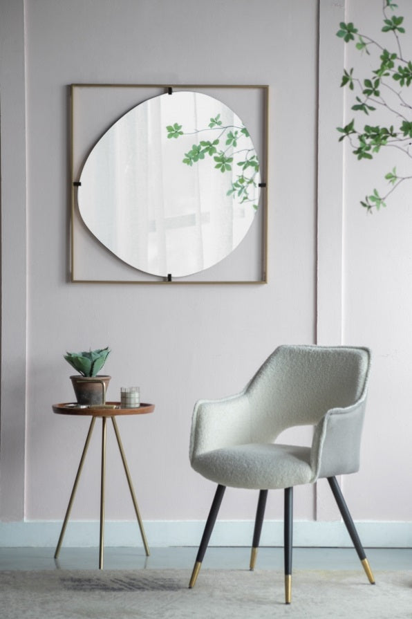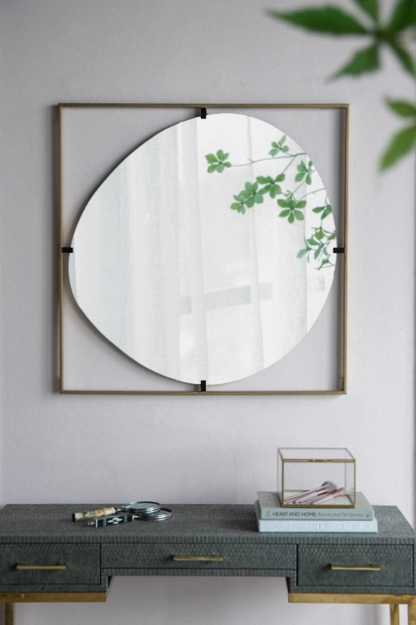 Expertly combining the best of contemporary and abstract themes, this decorative mirror boasts an uneven, free-flowing silhouette inside a slender gold metal frame. An ideal size to be mounted anywhere in your home, it will also adapt to complement a wide range of interior styles thanks to the warm colorway. The durable blend of iron and MDF also provides this piece with long-lasting durability.