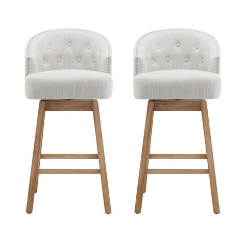 33.25" Swivel Counter Stools Set of 2, Upholstered Counter Height Bar Stools with Solid Rubber Wood WF532109BGE
