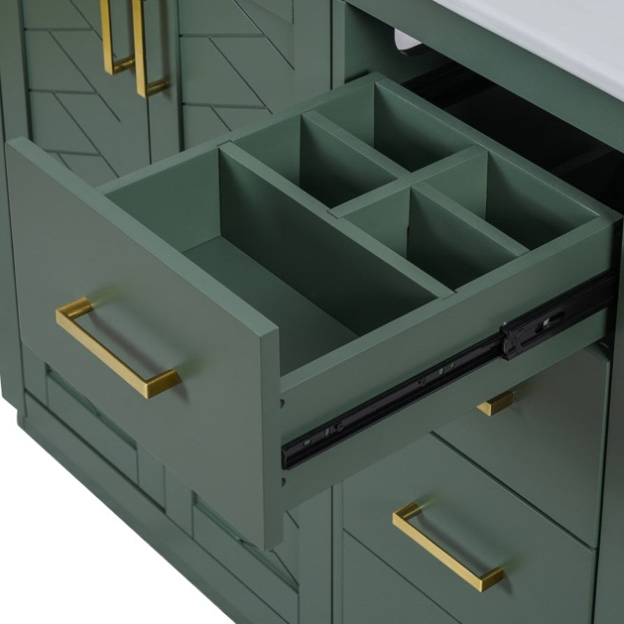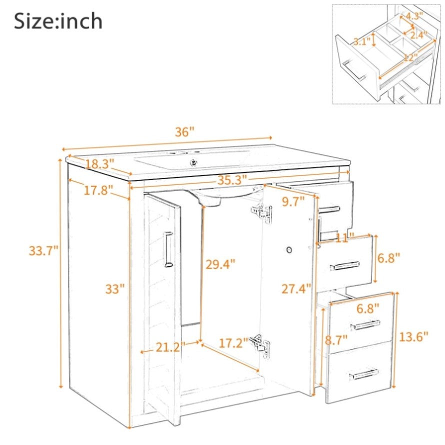 [ Multi-Purpose Cabinet & Concealed Storage ] Are you looking for stylish and functional storage solutions for your bathroom Our bathroom vanity provide ample space for all your toiletries and bathroom essentials. The combination of the cabinet body and the drawer perfectly stores all kinds of bathroom products and keeps the necessities away from water stains and dust. Soft-close doors and drawer fronts feature a water-resistant paint finish for durability.