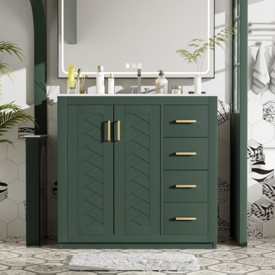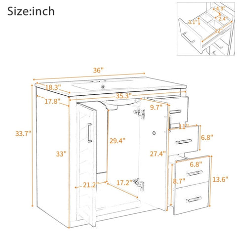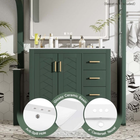 36'' Bathroom Vanity with Ceramic Sink Combo, Solid Wood Frame Bathroom Storage Cabinet, N710P243327F