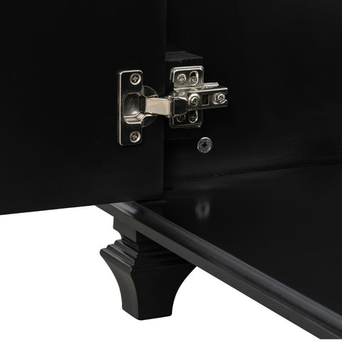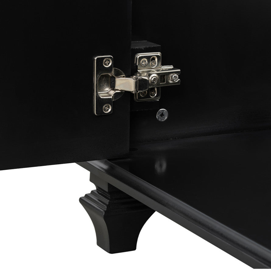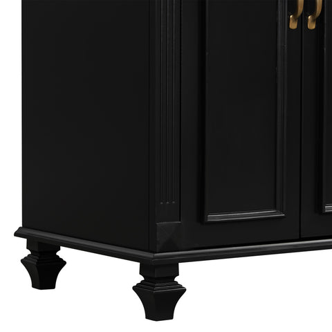 Elegant & Classic Design: Featuring a timeless black finish and gold-tone handles, this bathroom vanity brings a touch of elegance and sophistication to any bathroom décor. The clean lines and exquisite detailing create a luxurious feel.