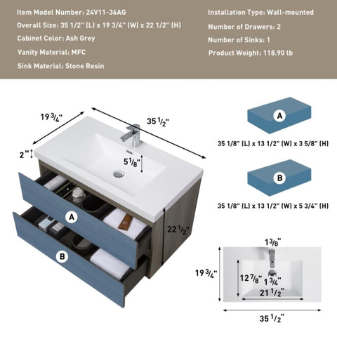 Floating Bathroom Vanity with Sink (24V11-36AG)