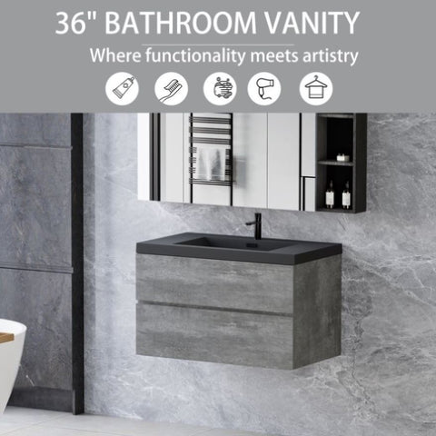 36" Floating Bathroom Vanity with Sink, Modern Wall-Mounted Bathroom Storage Vanity Cabinet with W1573P155846