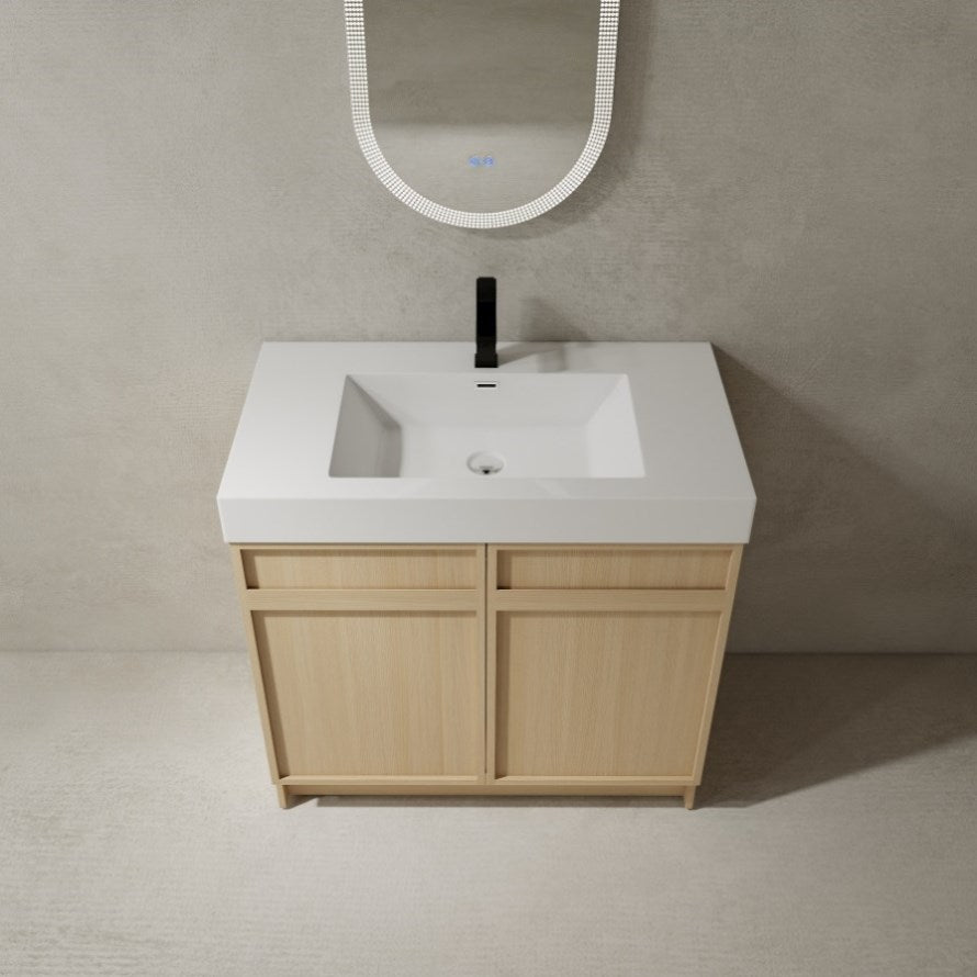 36" Freestanding Bathroom Vanity with White Resin Sink & 2 Soft-Close Cabinet Doors W999P239161