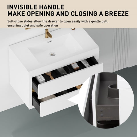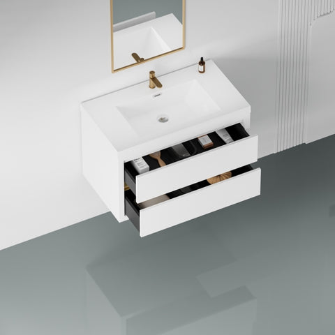 36" Wall-Mounted Bathroom Vanity with Sink, Floating Bathroom Storage Cabinet with Stone Resin W1573P211173
