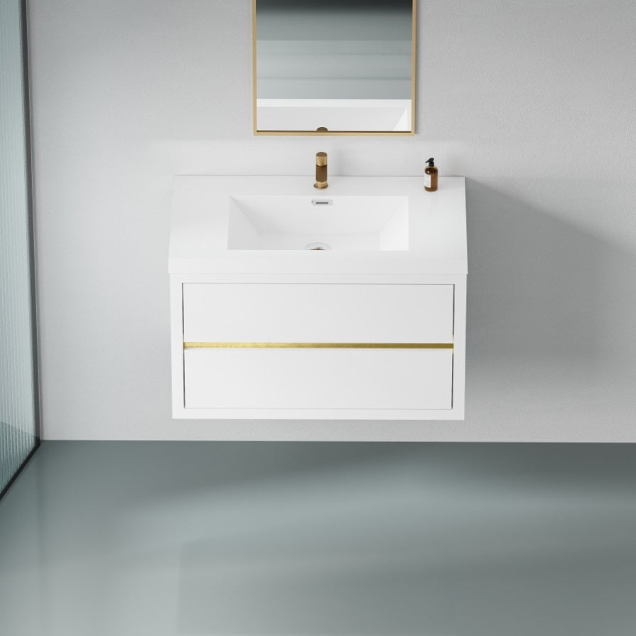 Premium Stone Resin Countertop: It features a glossy white, one-piece sink made of high-quality materials that are easy to clean, resist yellowing, and have low water absorption.
