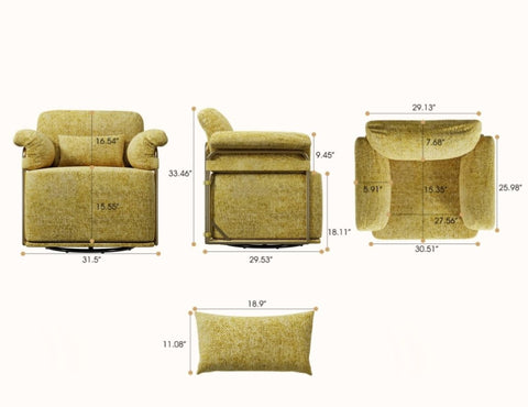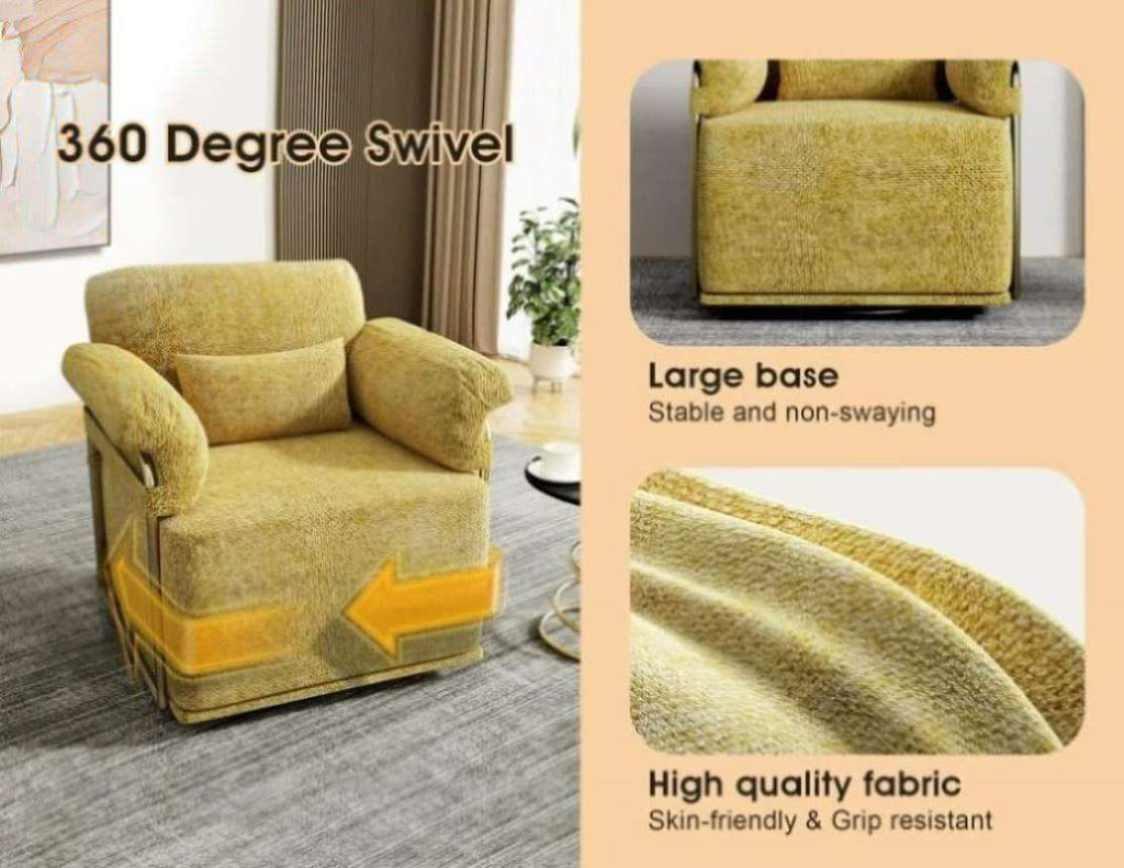 ErgonomicThe contemporary swivel square sofa chair, the wide upholstered features high-quality high-resilience foam and independent pocket springs, providing excellent cushioning performance and supporting weights up to 300 pounds.