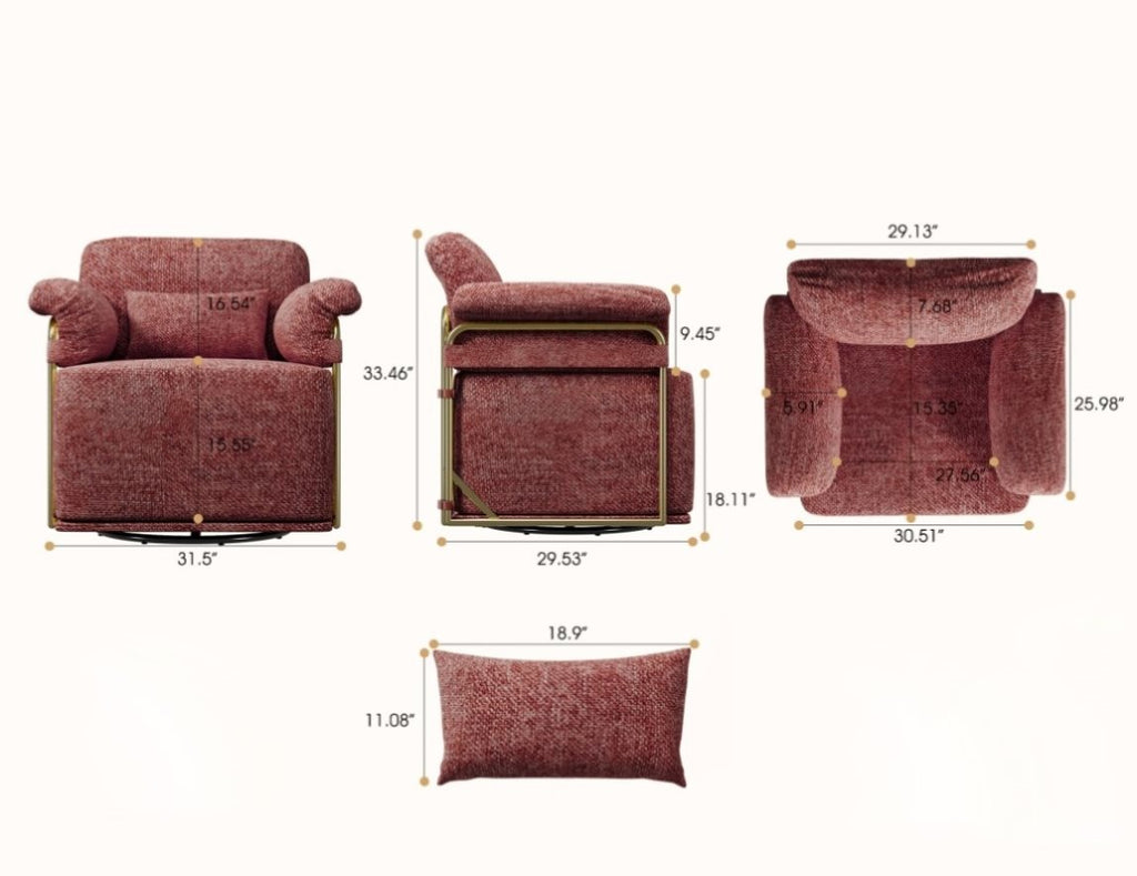 Luxury DesignThis square swivel accent chair is made from soft fabric,skin-friendly, scratch-resistant, easy to clean,providing better comfort.With a gold metal frame, very stylish and elegant.
