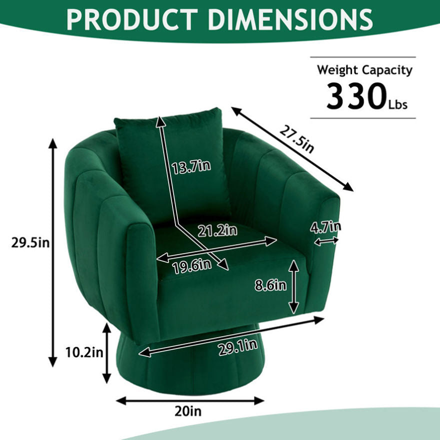 360° Swivel Accent Chair, Modern Velvet Fabric Living Room Armchair with Fluffy Cushions, Comfy 41230731