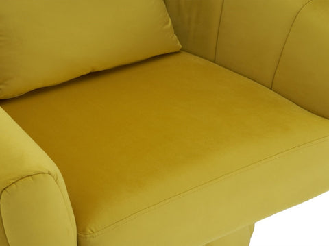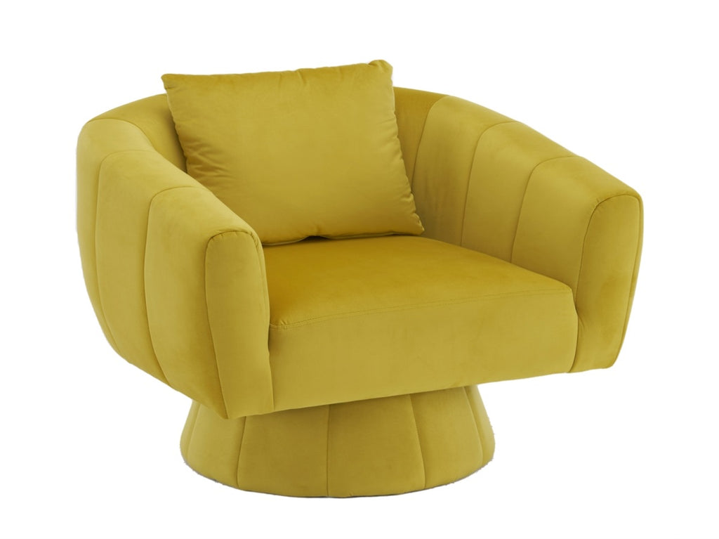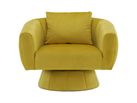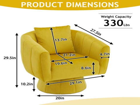 Introducing our Pumpkin-Shaped Swivel Armchair, a whimsical and charming addition to any living space. This unique armchair combines the warmth and playful design of a classic pumpkin with modern functional elements, creating a piece that is as delightful as it is practical. Measuring 75 cm in width, 70 cm in depth, and 74 cm in height, this chair not only stands out as a decorative statement but also offers exceptional comfort and support. The plush velvet upholstery in a vibrant yellow hue adds a touch of elegance and brightness, making it perfect for cozy evenings or casual relaxation. The sturdy iron base ensures durability while providing a stylish contrast to the soft, inviting pumpkin shape. With its smooth 360-degree swivel mechanism, this armchair enhances usability, allowing you to effortlessly turn and face different directions. Whether placed in a reading nook, living room, or even as a centerpiece in your dining area, this pumpkin-shaped swivel armchair is sure to become a favorite spot for both relaxation and conversation.