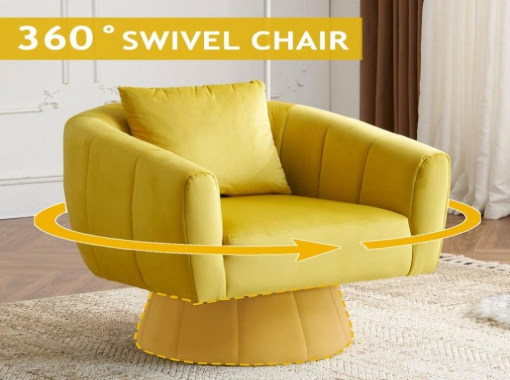 360° Swivel Accent Chair, Modern Velvet Fabric Living Room Armchair with Fluffy Cushions, Comfy 48567162