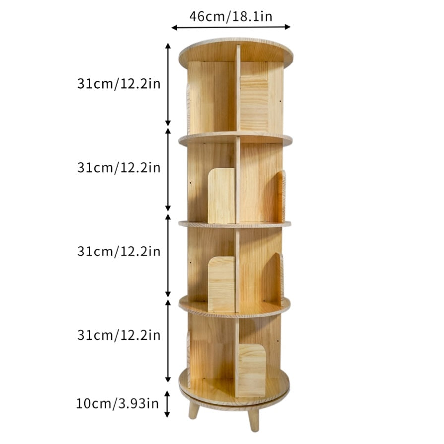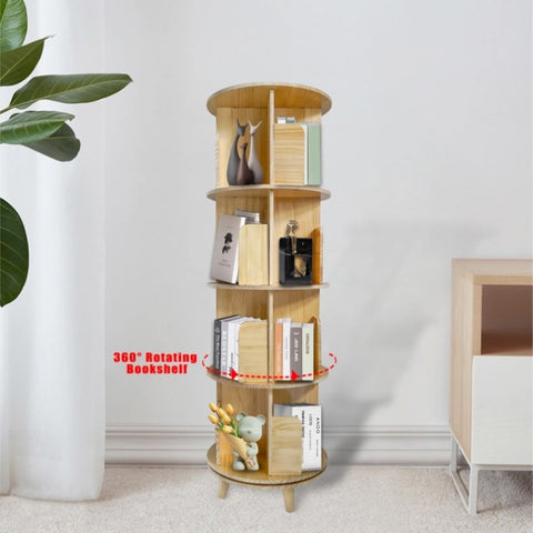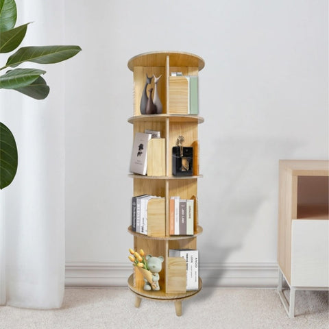 4-Layer Rotating Bookcase 360 Rotating Display Rack Pine Wood Rotating Bookshelf 25449992