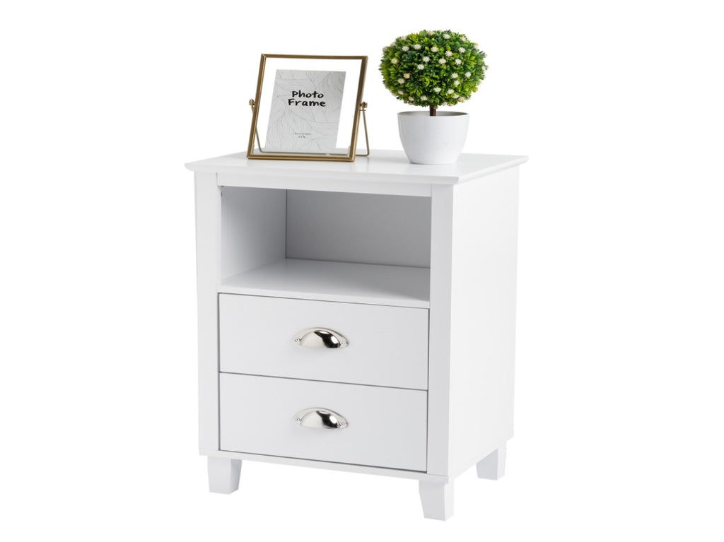 40*30*63cm Simple And Modern White Cabinet, MDF Spray Paint, High Legs, Two Drawers, Bedside Table 93586563