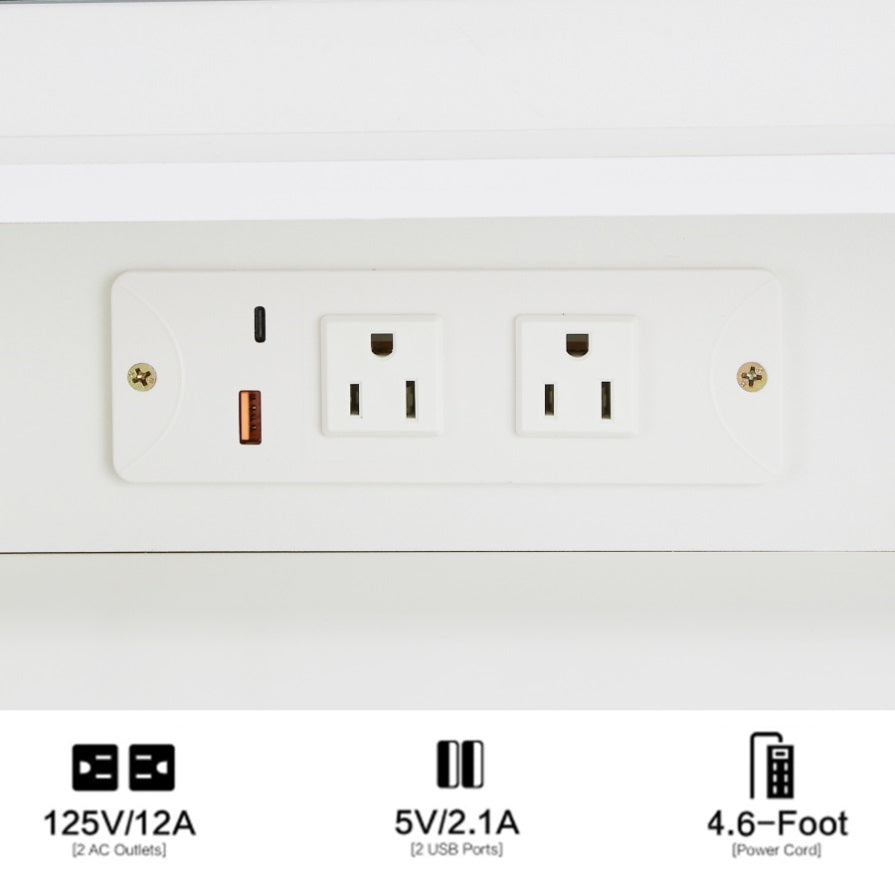 [2 AC powers and 2 USB ports built-in socket]: Equipped with 2 built-in AC powers and 2 USB ports socket, it can conveniently charge phones and tablets while you are dressing up. Two AC power sources allow you use both a curler and a hair dryer simultaneously.