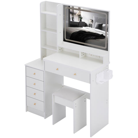 [Includes a padded dressing table stool]: The packaging includes a dressing table and a padded stool. You will no longer need to make additional purchases. This will greatly save you time and delivery cost.
