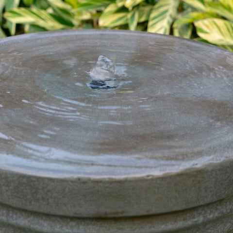This two-tone water fountain is a contemporary outdoor decoration with a ribbed green body on a rustic brown base.Its durable cement construction and simple pillar shape make it ideal for a lawn or garden.Use this transitional fountain to upgrade your patio with the relaxing sounds of running water.