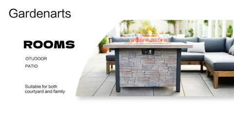 43.7-inch square outdoor heater fiberglass and iron Suitable for courtyard and outdoor Comes with a tabletop cover. Knock-down assembly saves space. CSA certified. 50000BTU
