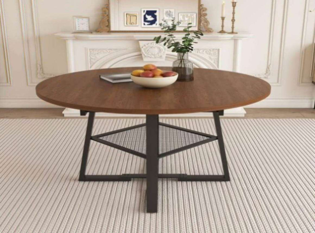• 【Extendable Round Dining Table / Multi-Functional Design for 4-8 People】This 47-inch round dining table features an innovative extendable structure that flexibly adapts to seat 4 to 8 people. The tabletop is made of thickened eco-friendly board with a classic walnut finish, combined with an open wire grid shelf at the base, perfectly integrating dining and display storage within a compact space.