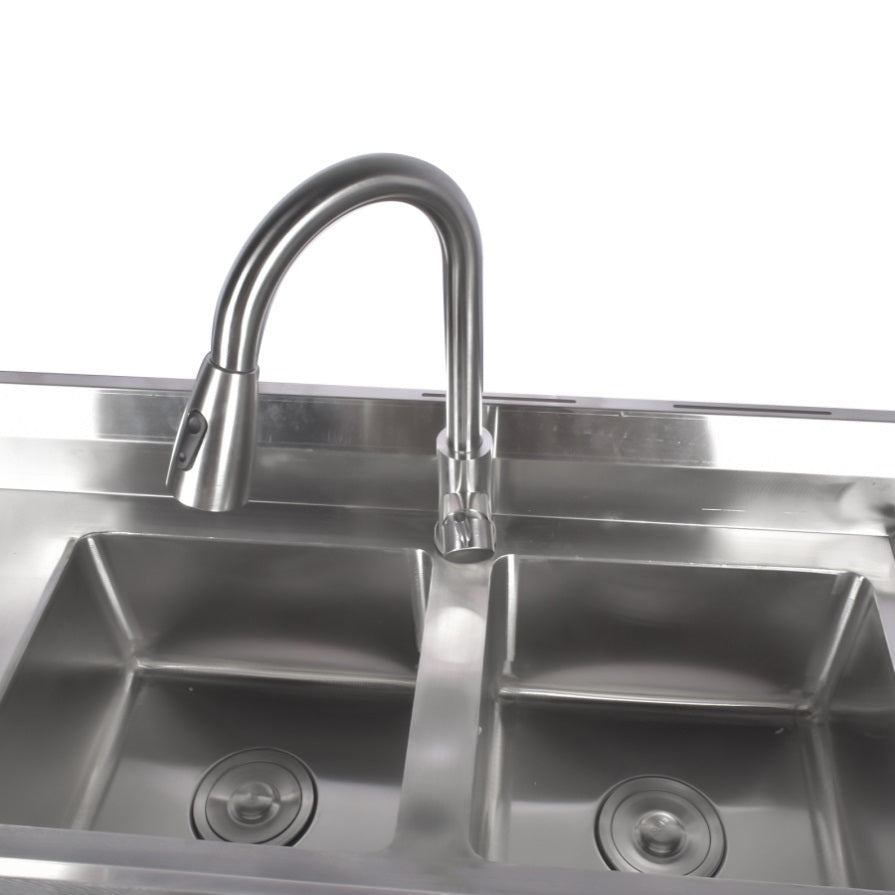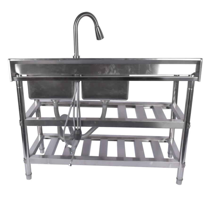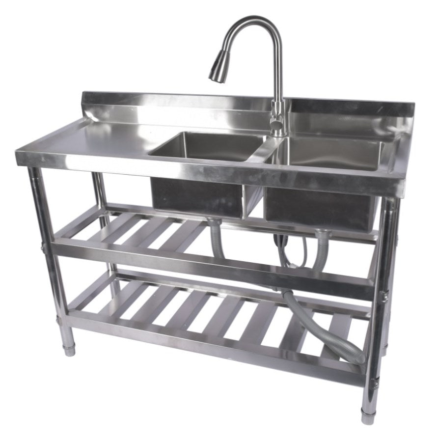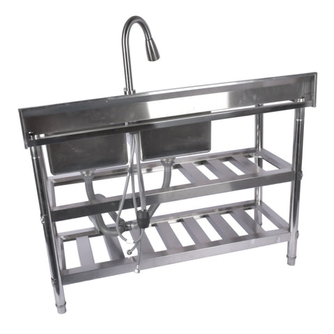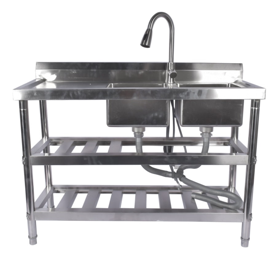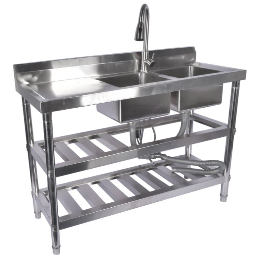 ▲FREESTANDING COMMERCIAL SINKS: stainless steel sinks with hot and cold water inlet pipes, gooseneck faucets with 360 degree swivel, pull-out faucets, feature washbasins, spacious drains and storage shelves. Suitable for any commercial premises.