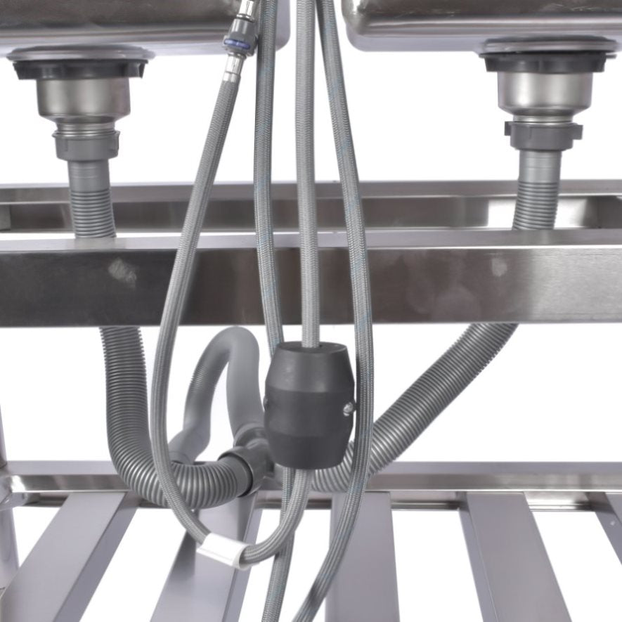 ▲EFFICIENT DRAINING SYSTEM: This commercial stainless steel sink set comes with a stainless steel drain mechanism and removable strainer to prevent food and debris from clogging the drain. Its efficient drain system drains quickly, reducing moisture in the sink and preventing water damage and pooling to ensure cleanliness and sanitation.
