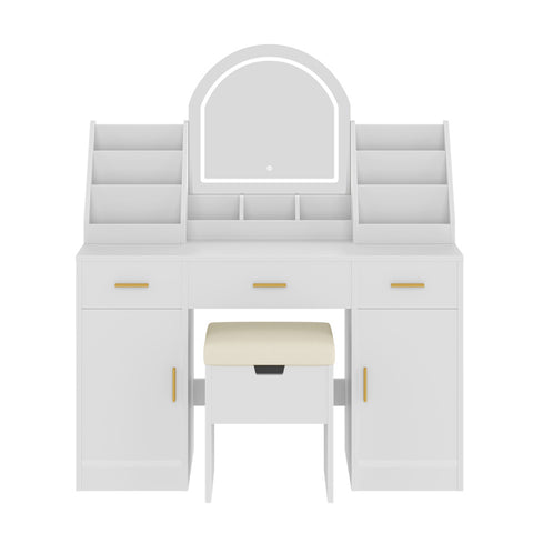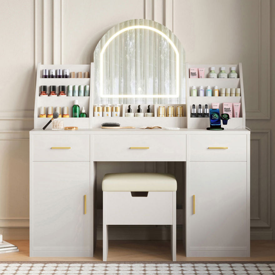 Storage Stool: Enjoy comfort and functionality with the included cushioned stool, which opens to reveal hidden storage for small items like hair accessories or chargers. A cozy and practical addition to your beauty routine.