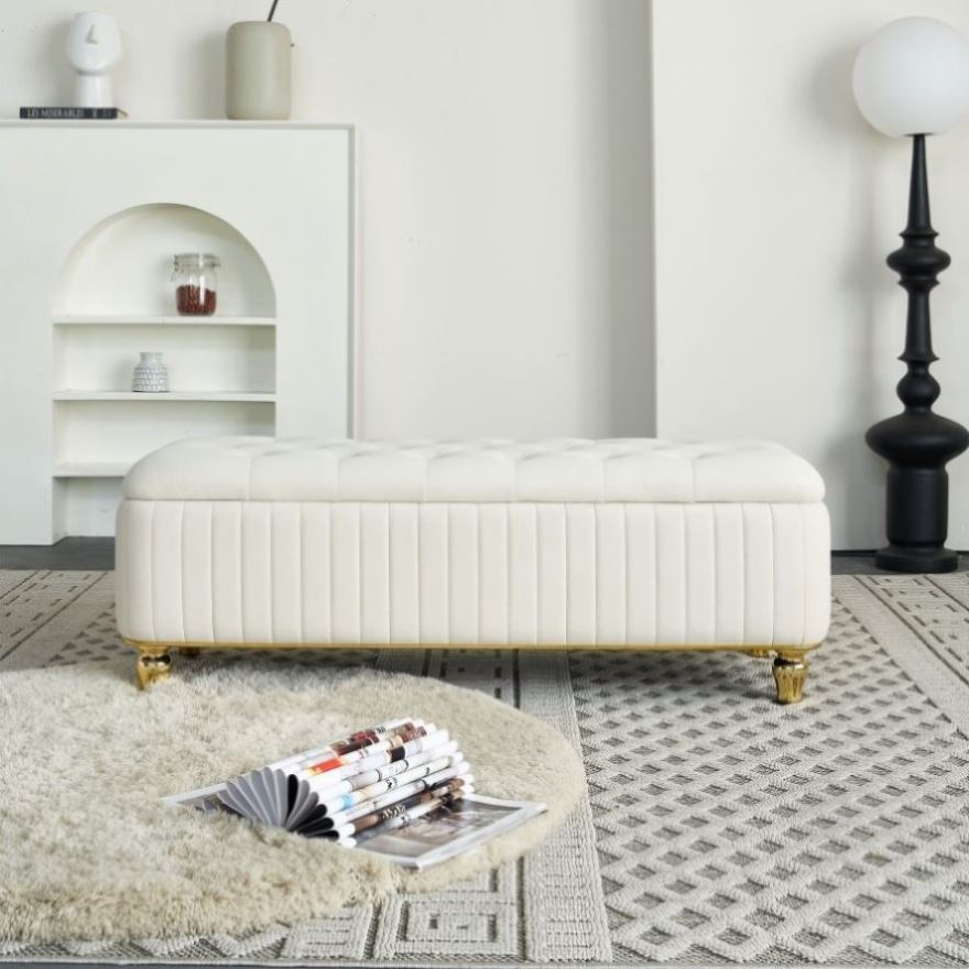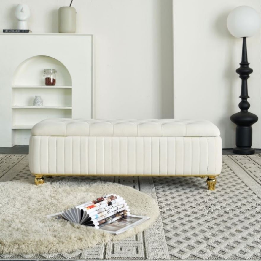 47.24''W Storage Ottoman,Upholstered Velvet Fabric Storage Ottoman with Safety Hinge, gold W579P224702