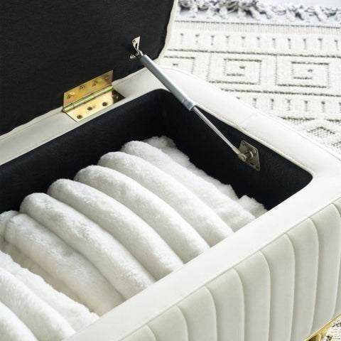 With a quick flip of the lid, an expansive storage area is unveiled, providing abundant space to neatly house magazines, cozy blankets, plush pillows, and an array of other belongings.