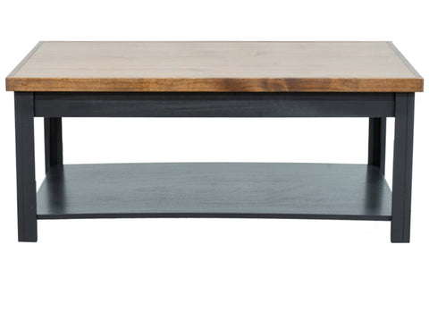 This Coffee Table delivers a flawless combination of modern farmhouse style and country simplicity. Beautifully crafted from Poplar Solids, Okoume Veneers and Knotty Alder, this cocktail table features a two-tone Black and Whiskey finish and will accent your upholstery beautifully. The vast table top and shelf below are ideal to showcase home décor accents while the five caster wheels on the base ensure quick and easy movement throughout your space. Fully assembled upon arrival, this piece is ready to unbox and enjoy.