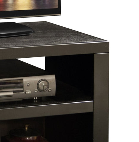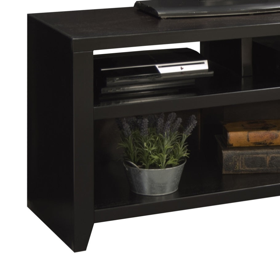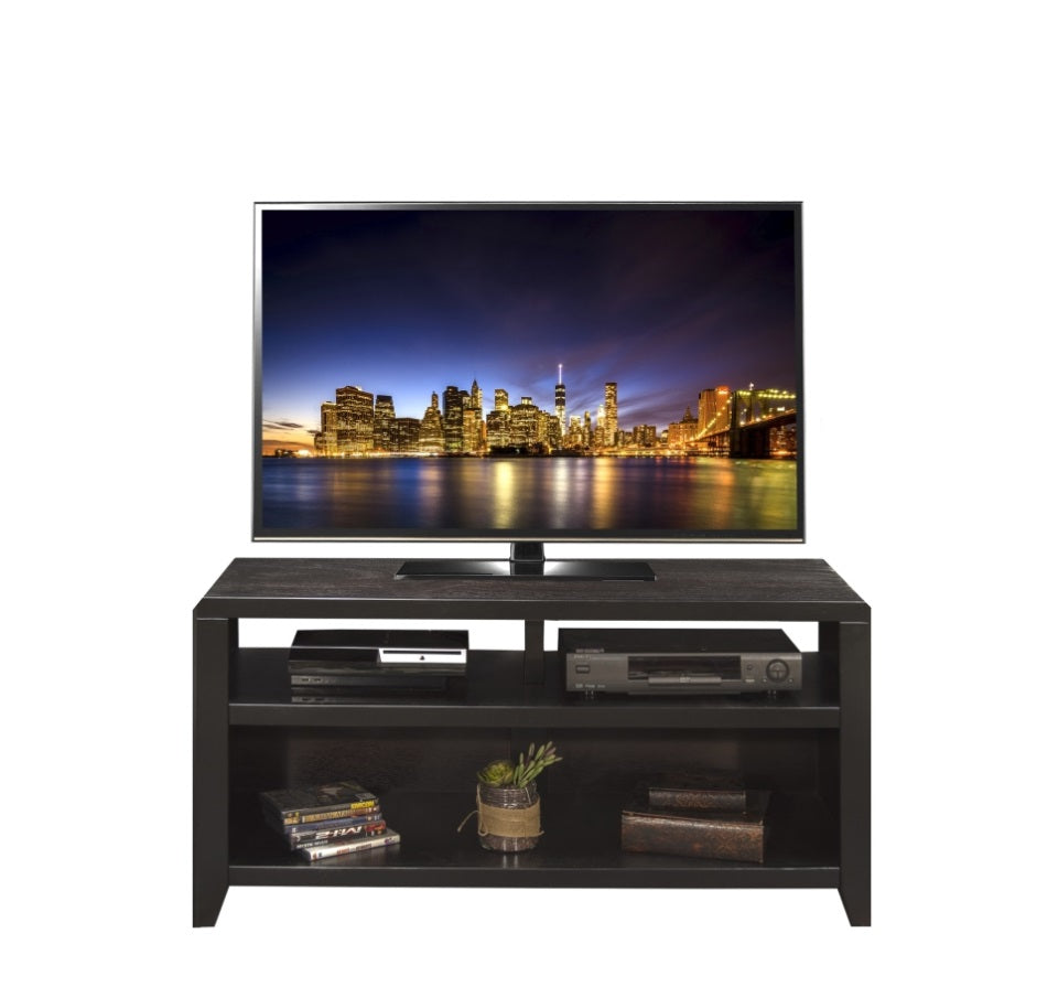 This 48 inch TV Stand from delivers form and function with an upscale urban feel. This TV Stand is crafted from Poplar Solids and premium Veneers in a rich Mocha brown finish and will accommodate TVs up to 55 inches. Open shelving will provide ample storage for media and gaming consoles and home decor favorites. Cable management openings on the back panel will keep your cords and wires concealed. Fully assembled upon arrival, this piece is ready to unbox and enjoy.